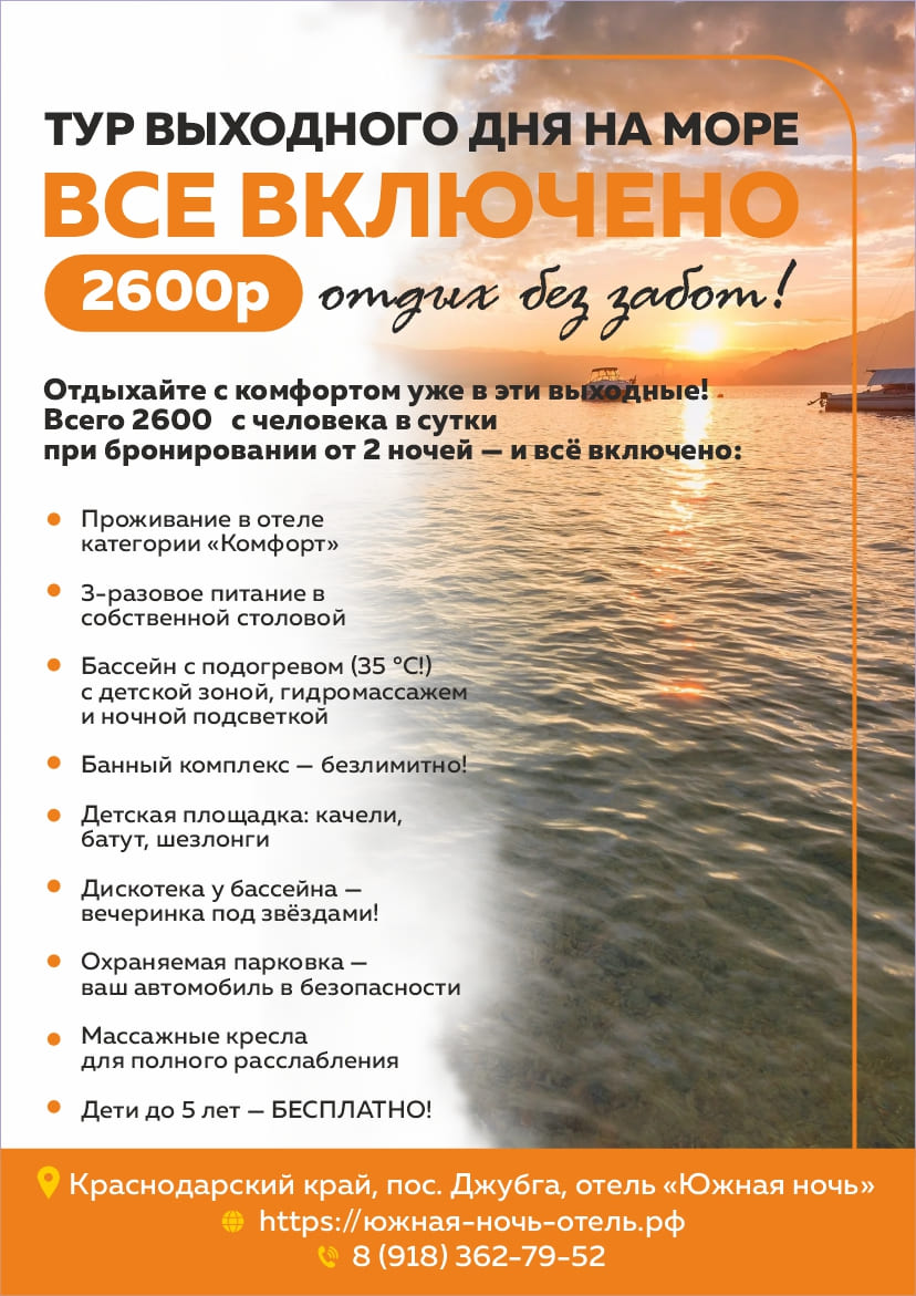 Тур Выходного Дня на море "Всё Включено" = 2600р с человека